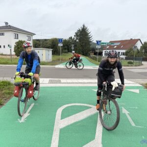 Wir hatten es nicht weit zum KZ Hinzert (FB, Insta, sonst). Schon vor der Führung waren wir „sehr angefasst“ von der Anlage und der Atmosphäre. #FCKNZS #NieWiederIst Jetzt Die Führung ließ uns in der Zeit reisen und zeigte uns gleichzeitig, wie „1933“ unsere Gegenwart erscheint. Anschließend halfen wir bei den Vorbereitungen für eine Veranstaltung am kommenden Wochenende und schnitten einen Weg frei, rechten einige Wiesen und sammelten ca. ziemlich viel Fallobst auf. Das anschließende Gespräch mit der Leiterin der Gedenkstätte, Dr. Sabine Arend, war ein würdiger Abschluss. Respekt Thomas, extrem coole Umsetzung dieser schwierigen Aufgabe. Danke! Der Kontrast zum weniger Kilometer entfernten Flugzeugmuseum, das randvoll mit Militärflugzeugen und einer weitgehend „unreflektierten“ Betextung war, hätte kaum größer sein können: Dort die Opfer des Krieges, hier ein fast kindliche Begeisterung für Tötungstechnik. Puh, schwerer Tobak! Coole Trails und schöne Landschaften lenkten uns anschließend ein wenig ab. Ein Stausee erfüllt die „Badesee-Aufgabe“ (wir ließen das Baden aber Temperaturgründen aus). Sehr eindrucksvoll war der Keltischen Ringwall, den wir in einer in einer herzförmigen Art und Weise (zweite Aufgabe) umfuhren. Nach einem Supermarkt ging es zur Freizeitanlage „Otto Müller Hütte“, dort konnten wir einen fantastischen letzten Abend verleben, die vielfältigen Eindrücke des Tages reflektieren und die gesammelten Pilze und andere Dinge auf dem Feuer bereiten.